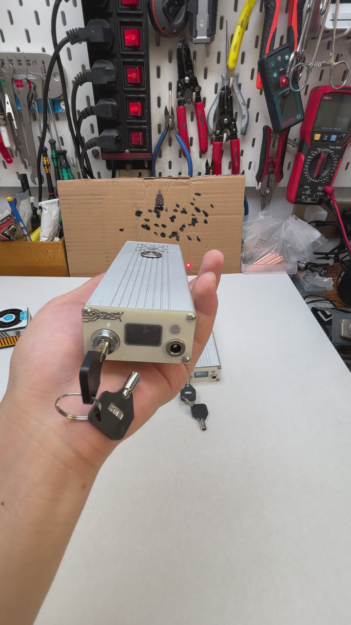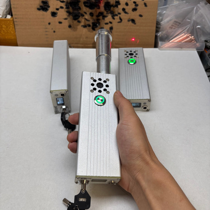 YZ-02 DIY Laser Cannon 120W (Battery DC 14.8V 5Ah; Wavelength 1064). Range 5-10 meters. Battery life 5 years, with fast charging.